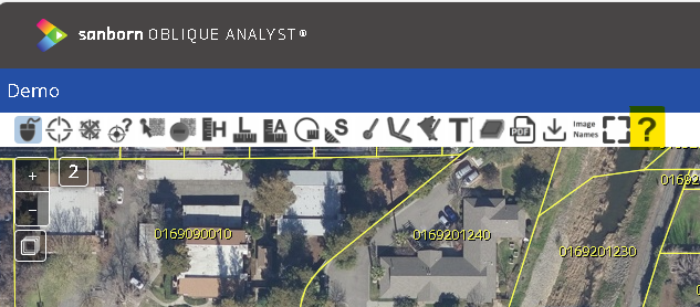 For how to and general help for your specific Sanborn Oblique Analyst (SOA) installation, you should use the online help for the site by selecting the "?" in the top icon task bar (as highlighted below).